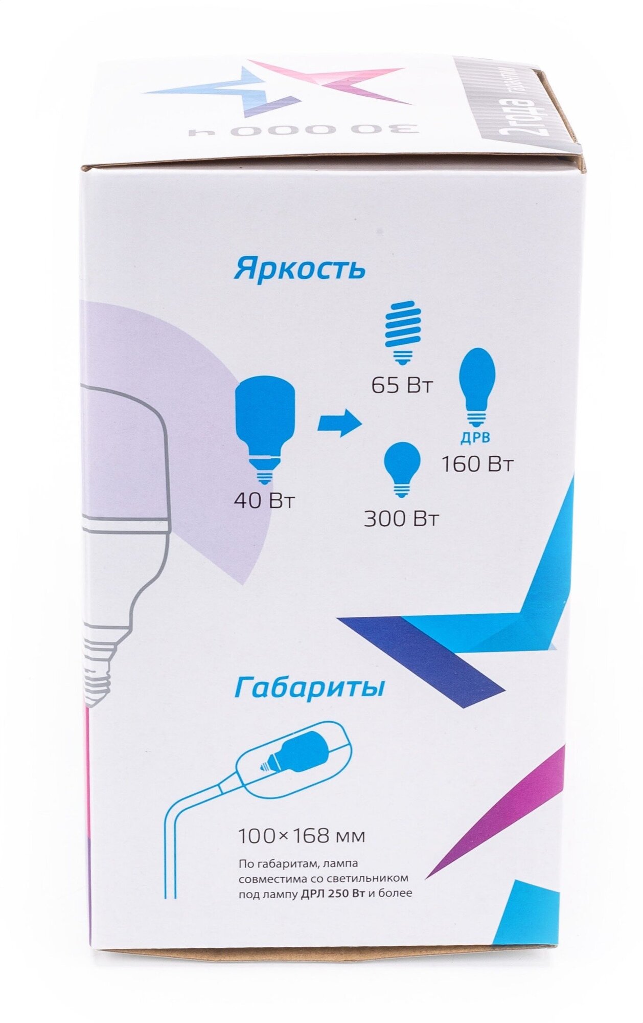 Светодиодная лампа космос HW LED Т100 40Вт E27, холодный дневной свет, аналог лампы 300 Вт. Переходник Е40 в комплекте.