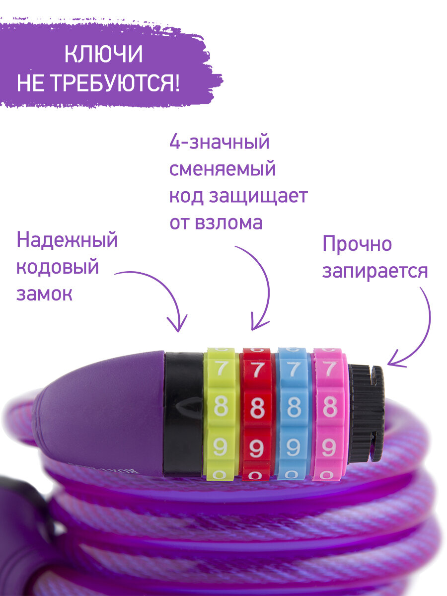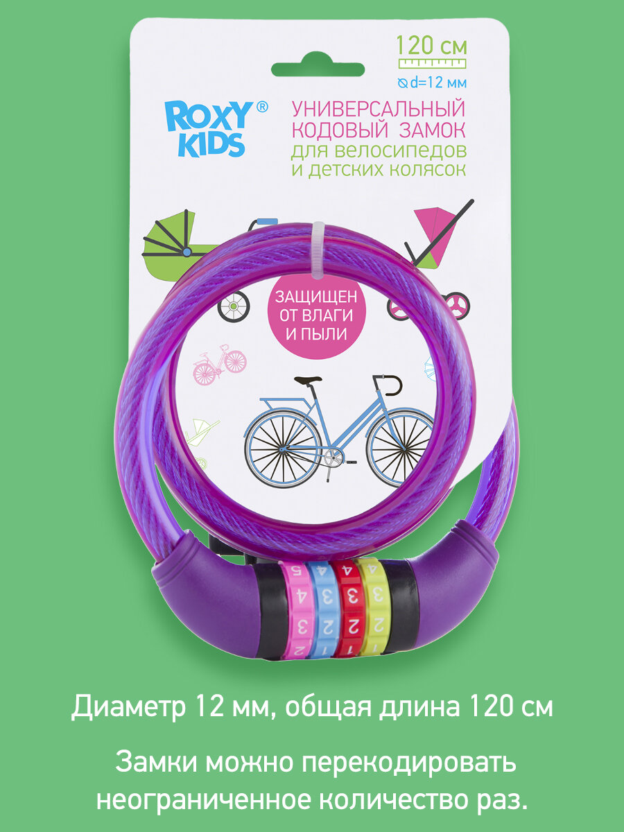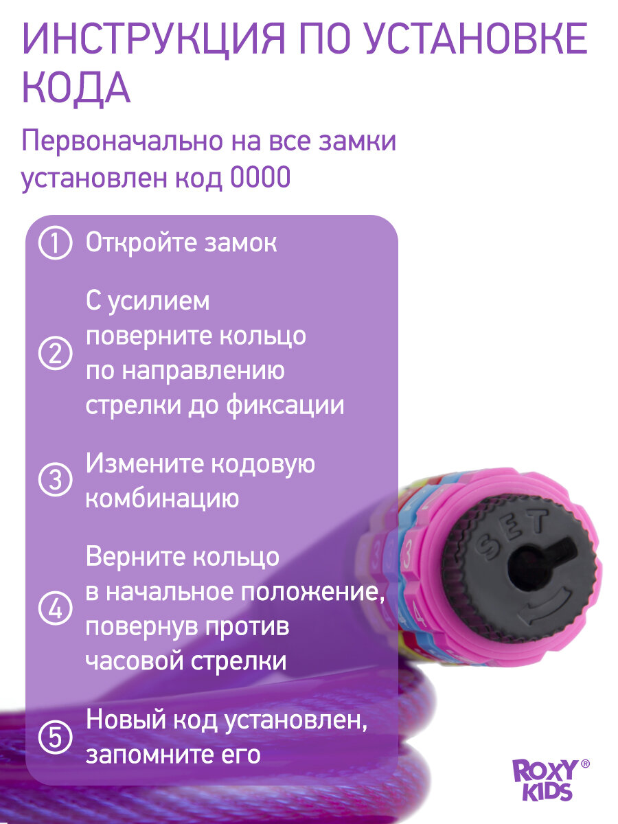 Замок кодовый для коляски, самоката, велосипеда от ROXY-KIDS 120 см, цвет фиолетовый интересное: