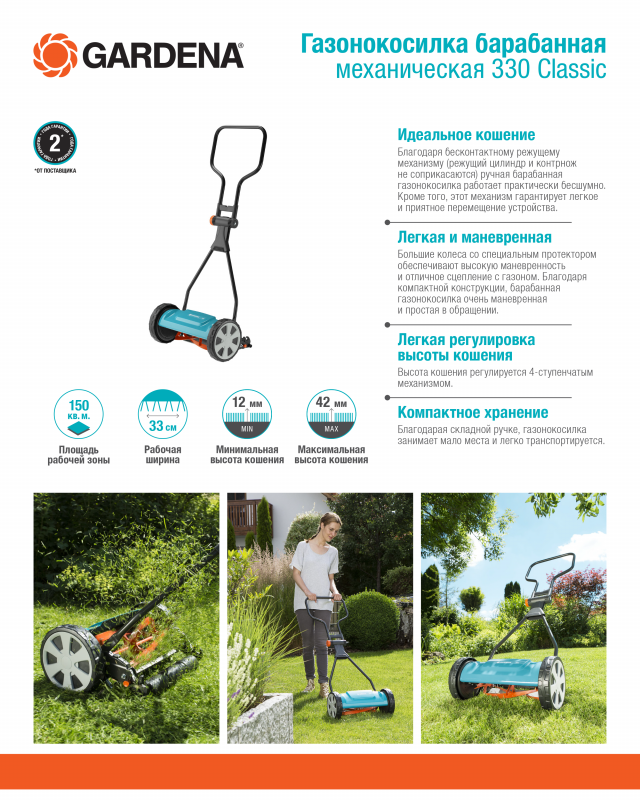 Газонокосилка ручная Gardena ES 500 (04066-20.000.00) 500Вт
