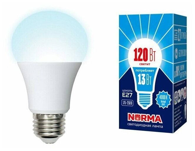 Volpe LED-A60-13W/NW/E27/FR/NR Лампа светодиодная. Форма "A", матовая. Серия Norma. Белый свет (4000K). Картон. ТМ Volpe
