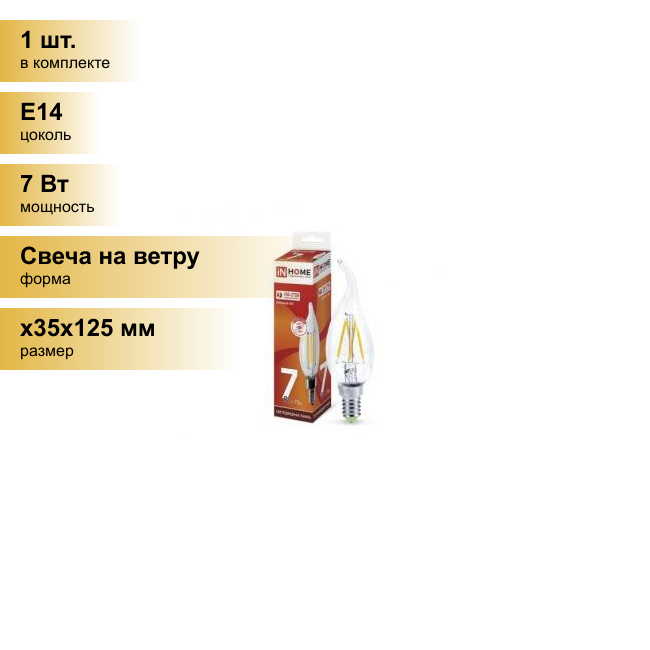 Купить IN HOME Лампа сд led-свеча на ветру-deco 7Вт 230В Е14 6500К 630Лм прозрачная 4690612034997