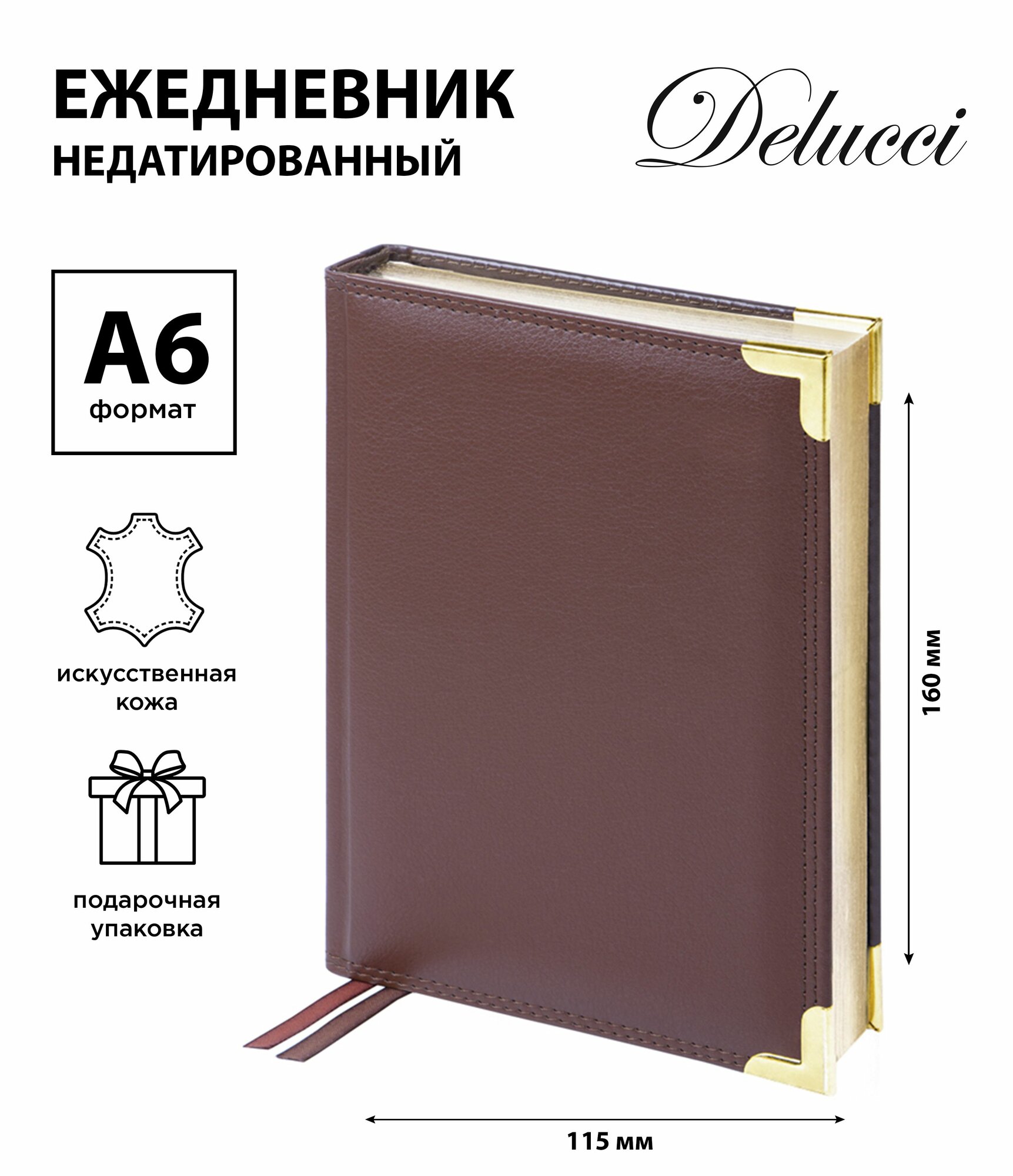 Ежедневник недатированный Delucci A6, 160 листов, кожа, фактурная кожа, золотой срез (UD1_90602)