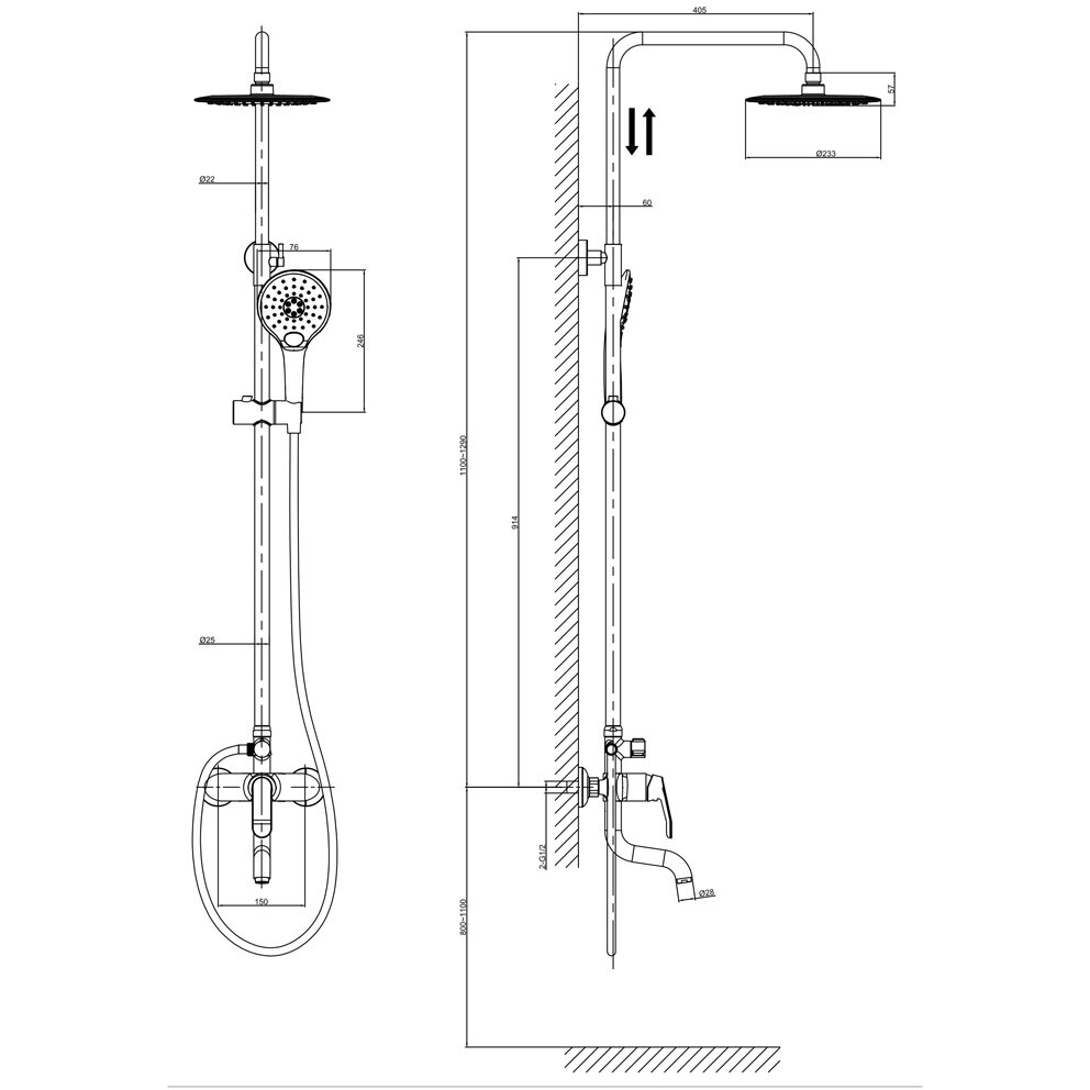 | Форма верхнего душа | круглая |
