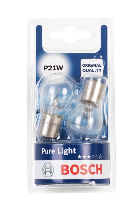 Комплект ламп накаливания блистер 2шт P21W 12V 21W BA15S PURE LIGHT (стандартные характеристики) BOSCH 1987301017