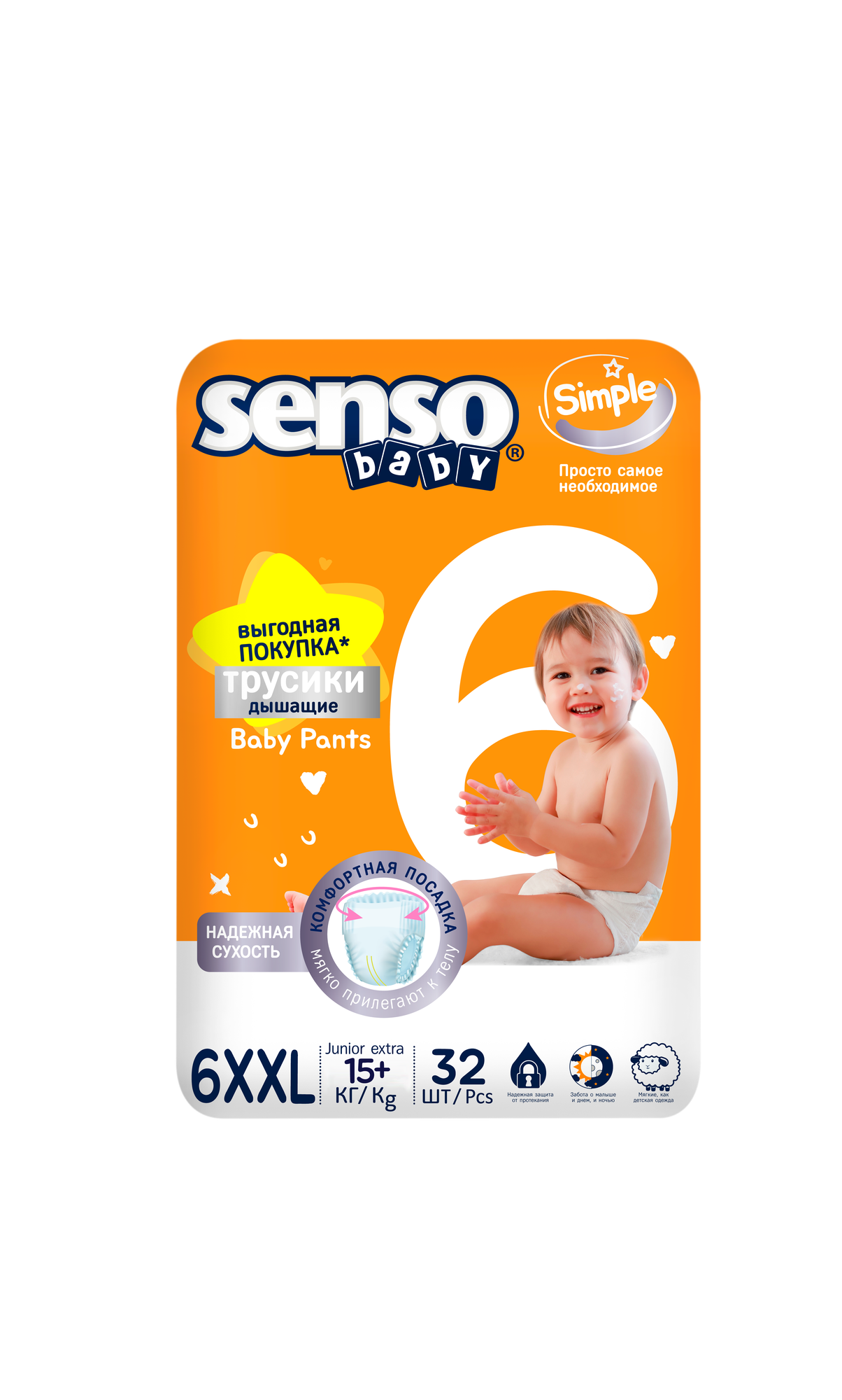 SENSO/сенсо Baby Трусики - подгузники SIMPLE 6XXL-JUNIOR EXTRA (15-30кг) 32шт