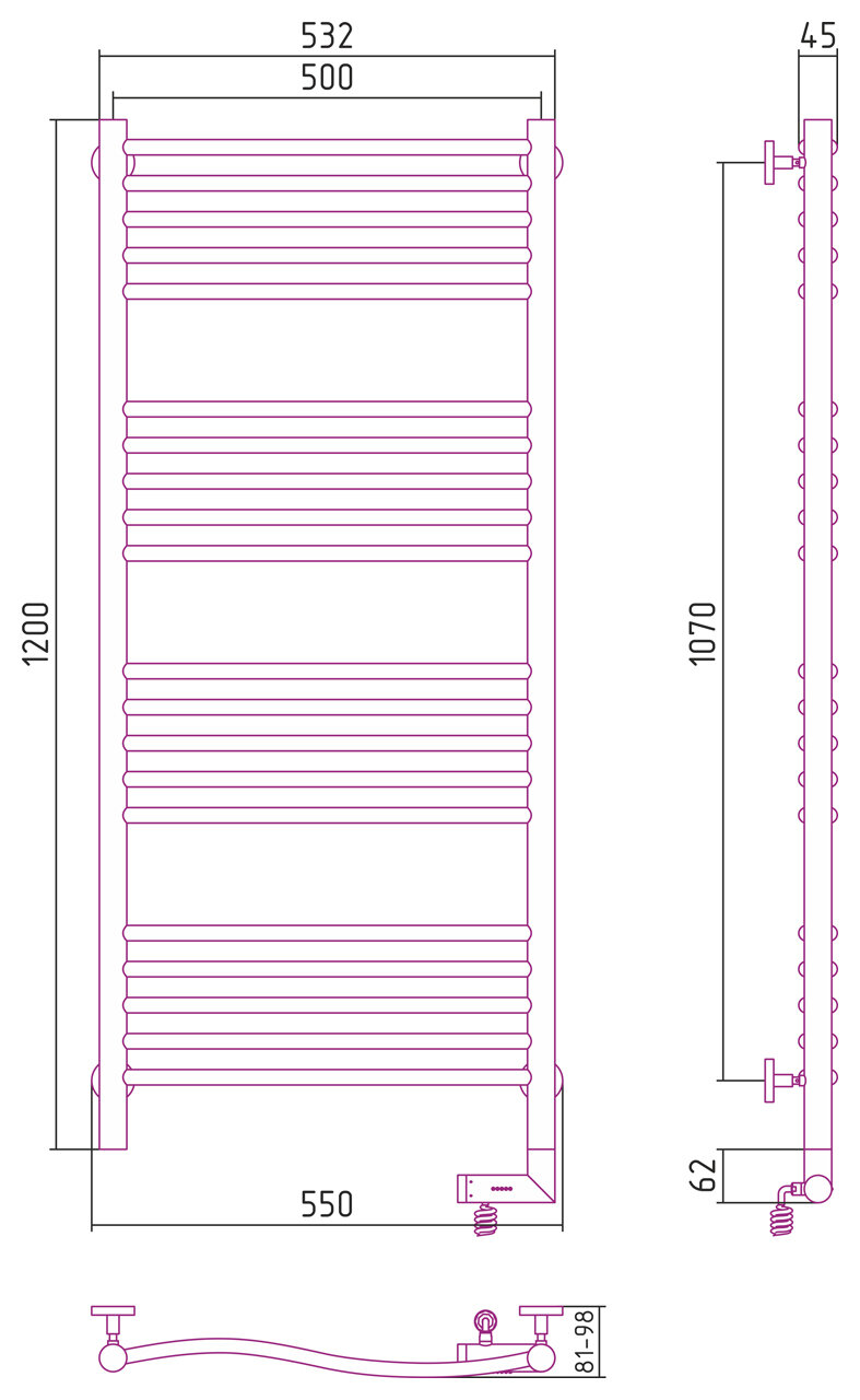 Полотенцесушитель Электрический Тругор Пэк сп 5 П 60х50 черный ВГП