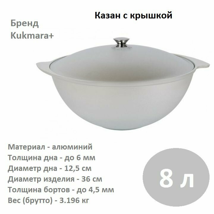 Казан Алюминий Литой 8Л для Плова (5) Kukmara .