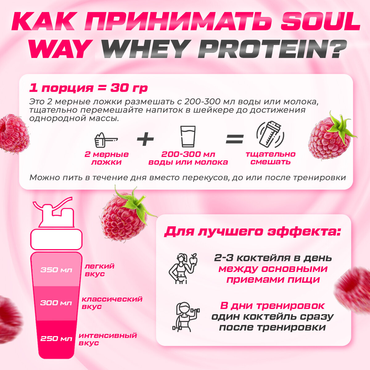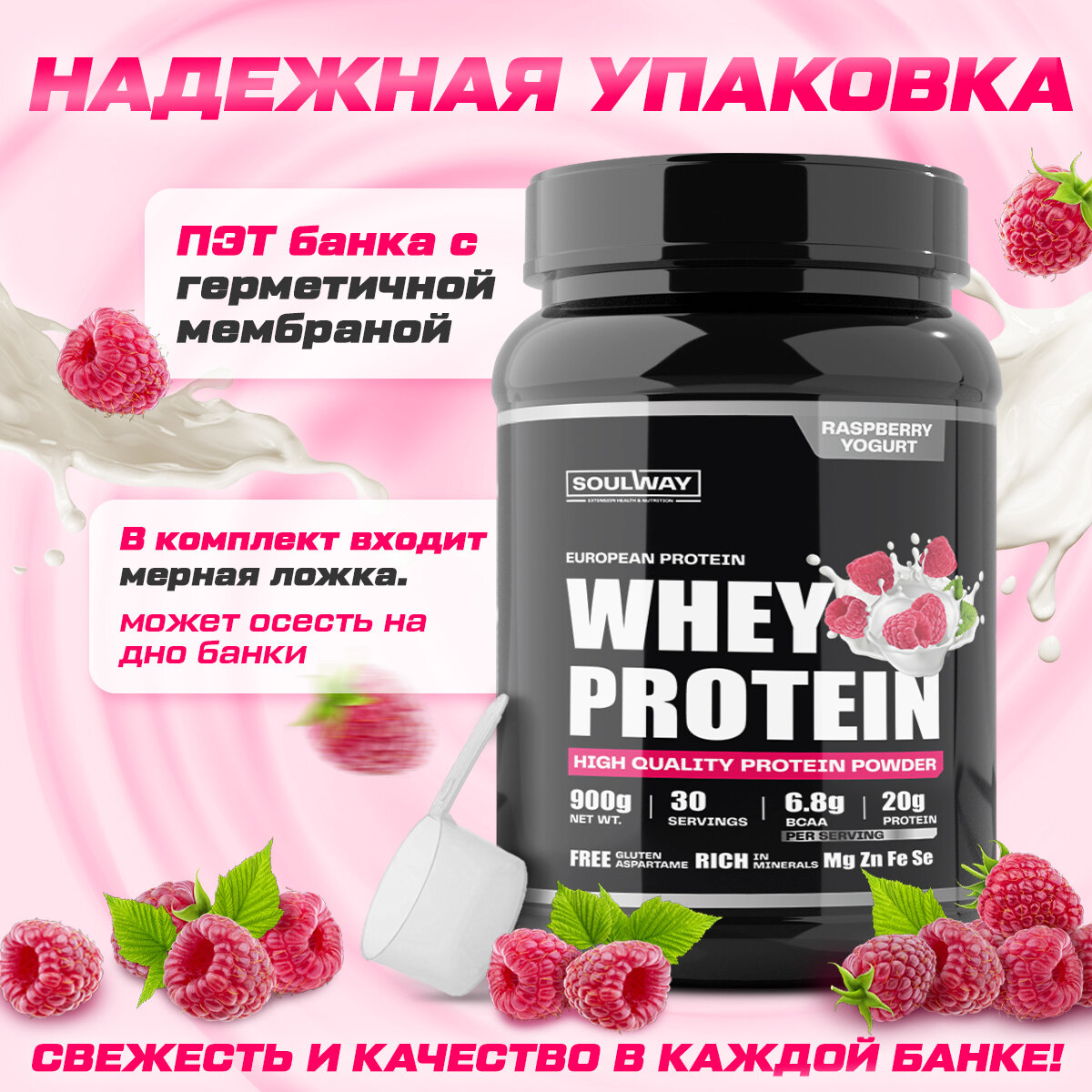 Протеин сывороточный Soul Way со вкусом малиновый йогурт / 900 гр 30 порций