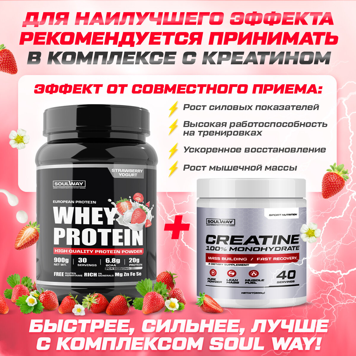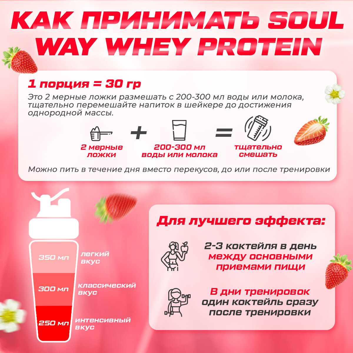 Протеин сывороточный Soul Way со вкусом земляничный йогурт / 900 гр 30 порций