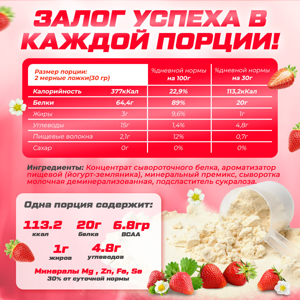 Купить Протеин сывороточный со вкусом земляничного йогурта, 900 гр 30 порций