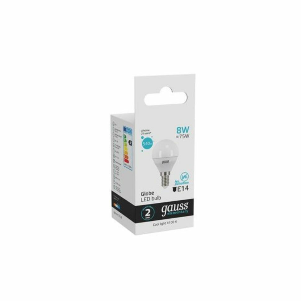 Купить Лампа светодиодная Elementary 8Вт шар 4100К нейтр. бел. E14 540лм, GAUSS 53128 (1 шт.)