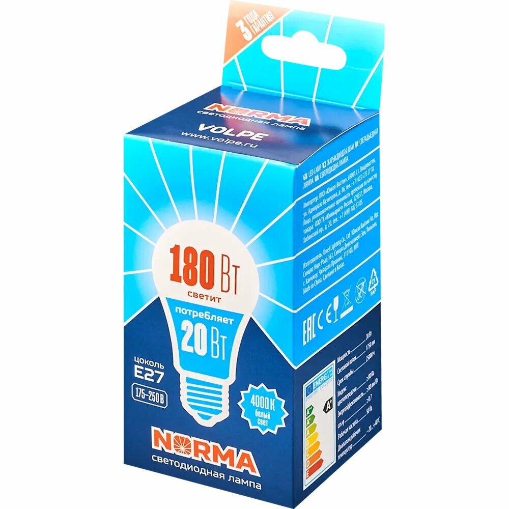 Лампа светодиодная LED E27, груша, 20Вт, 230В, 4000К, нейтральный свет интересное: