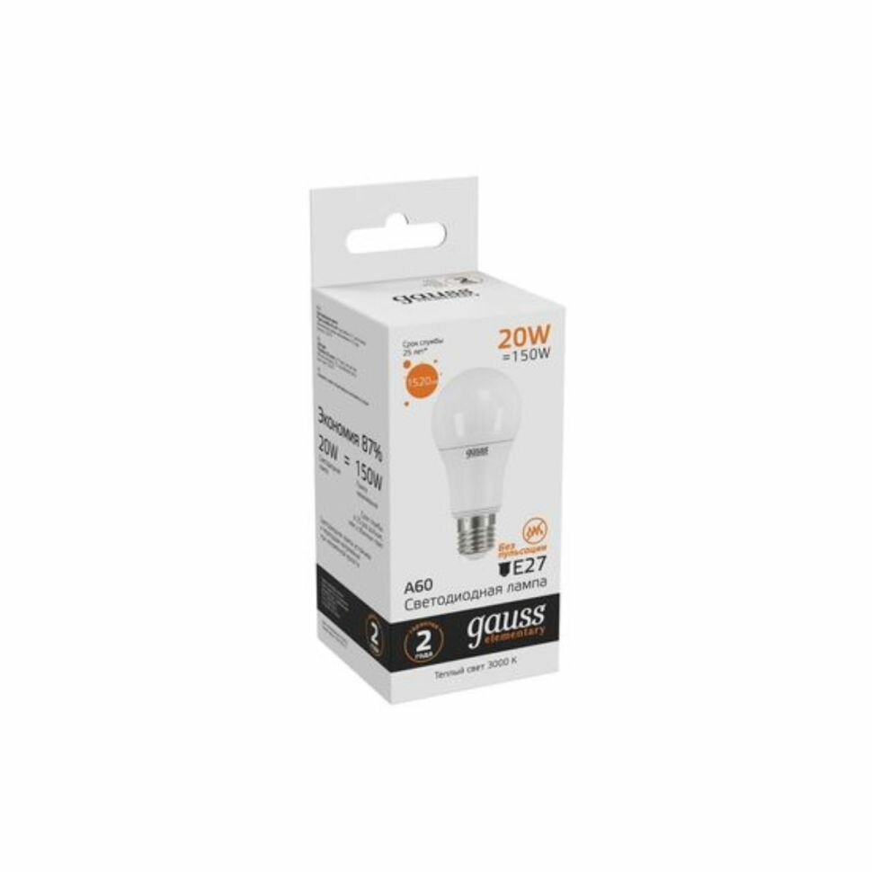 (5 шт)Лампа Gauss Elementary A60 20W 1520lm 3000K E27 LED 1/10/40