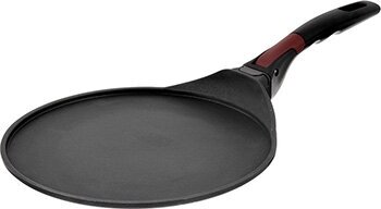 | Плюсы: | Съёмная ручка, неплохая по качеству. Блины не подгорают, снимаются хорошо. Покрытие самое обычное, как на сковородках по акции за 300 р |
