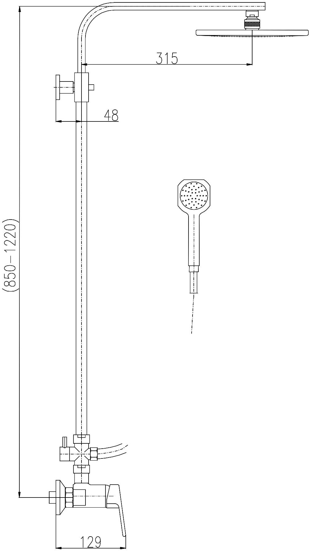 | Дополнительная информация | высота стойки для душа: 1220 мм; длина верхнего душа: 200 мм; ширина верхнего душа: 200 мм |