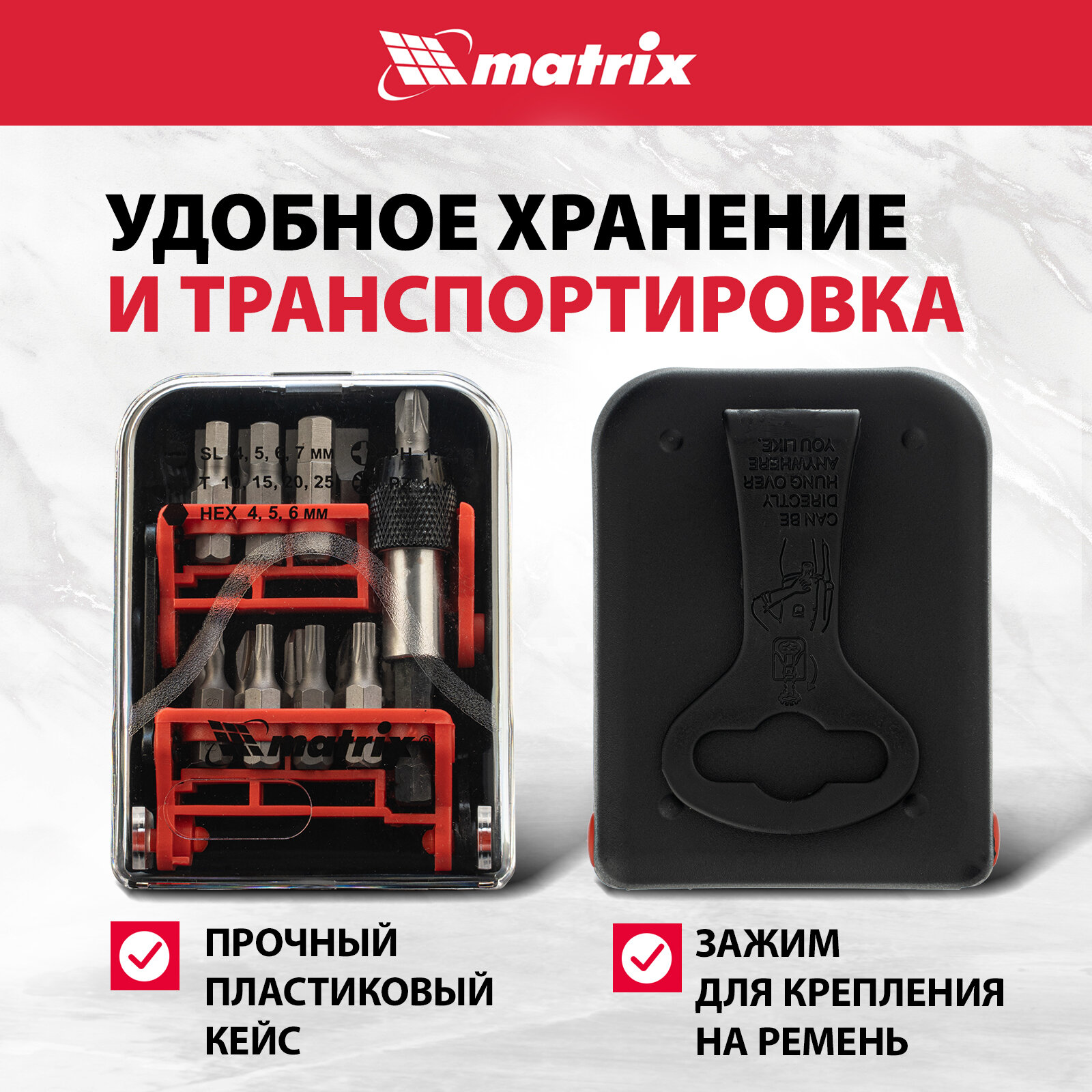 Набор бит, адаптер для бит, сталь S2, 18 предметов, пластиковый кейс Matrix