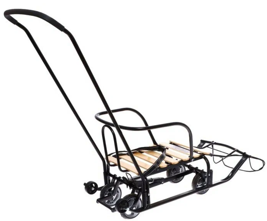 Санки Тимка 5 Универсал, Т5У/Ч, переставная ручка, ремень безопасности, колеса на полозьях, черные, Nika интересное: