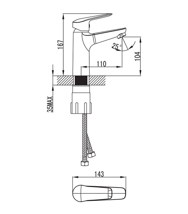 | Комплектация | смеситель - 1 шт., гибкая подводка - 2 шт. |
