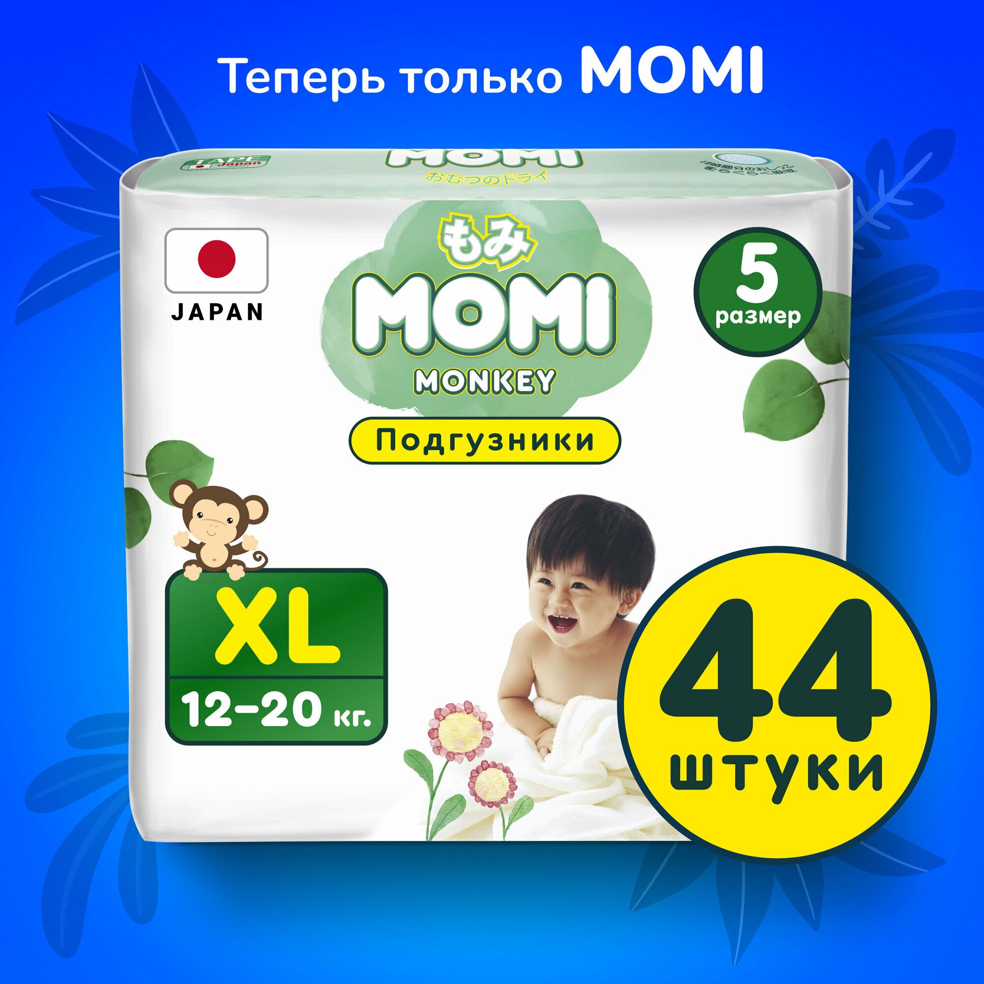 Подгузники детские MOMI Monkey 5 XL 12-20 кг, 44 шт