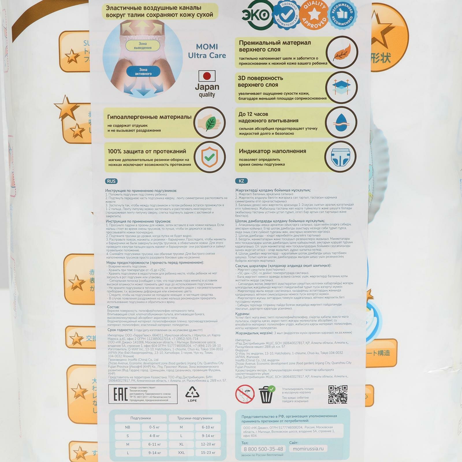 | Особенности | индикатор наполнения / рельефная внутренняя поверхность / эко-подгузники / эластичные резинки вокруг ножек / эластичный пояс |