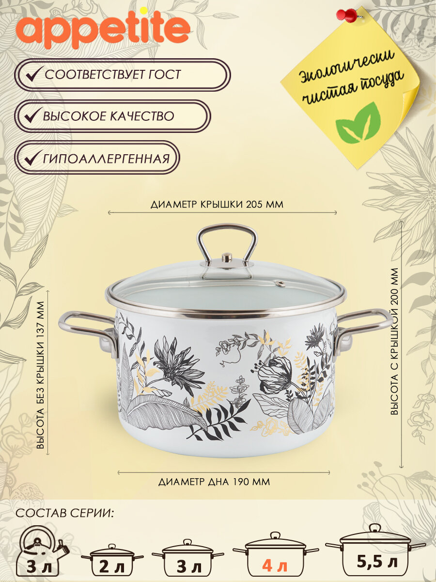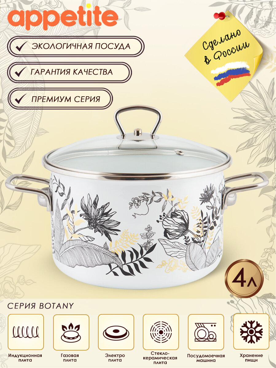 Кастрюля эмалированная с крышкой Botany 4,0л TM Appetite
