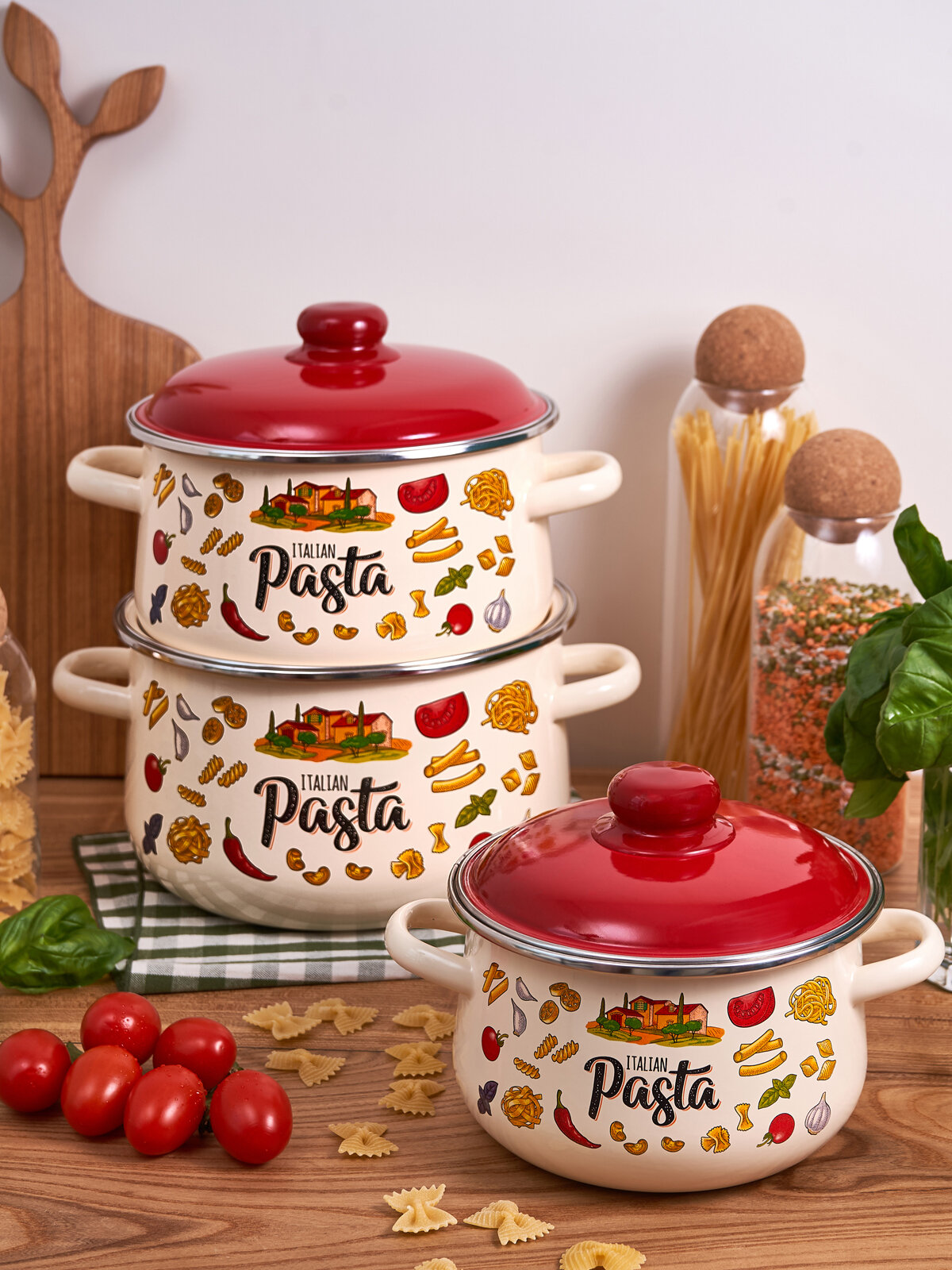 Кастрюля эмалированная Appetite Pasta ITALIAN, с крышкой, 4 л