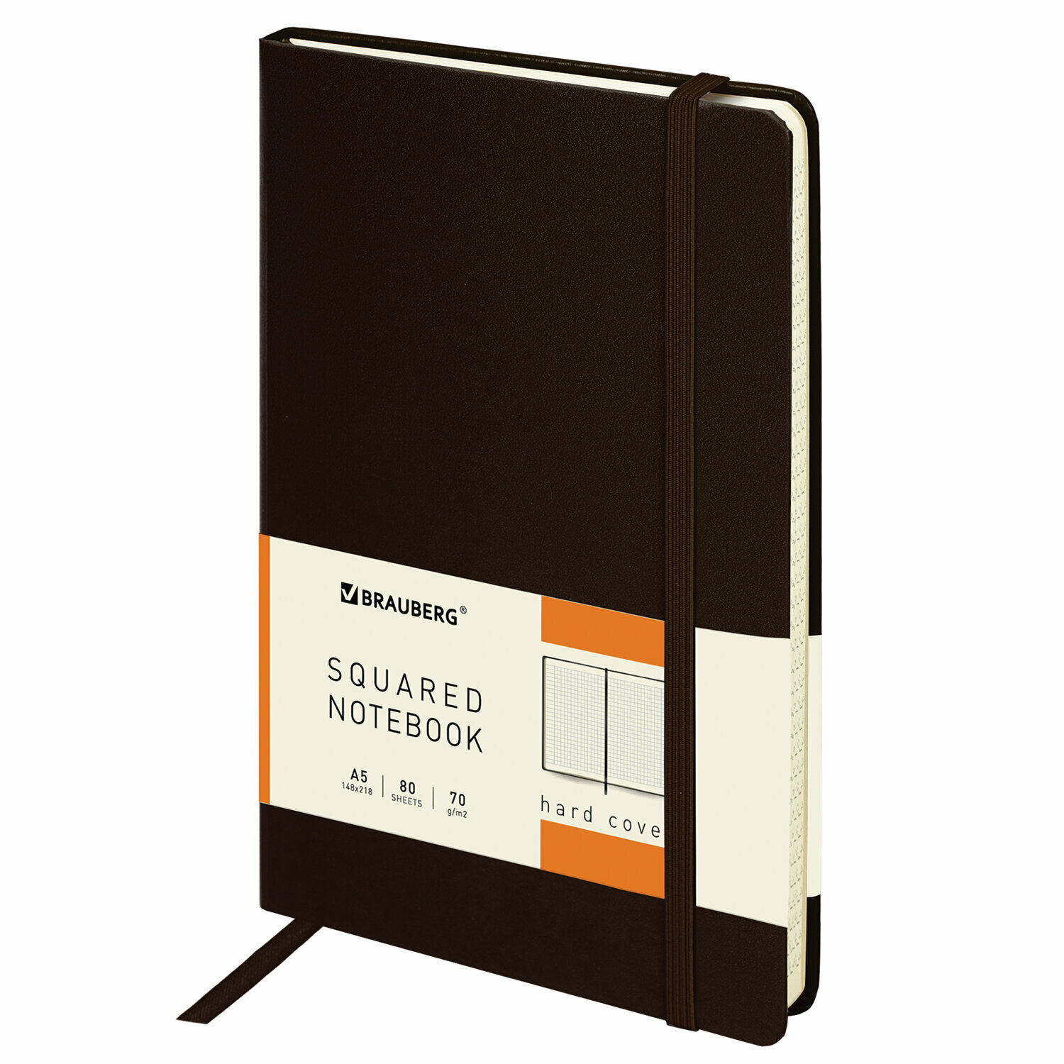 Блокнот в клетку с резинкой А5 (148x218 мм), 80 л балакрон коричневый BRAUBERG "Metropolis", 111586