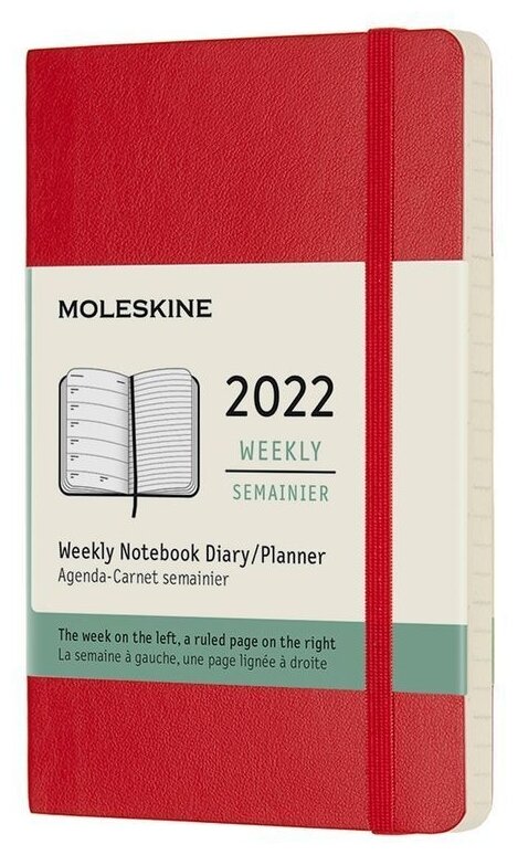 Еженедельник Moleskine Classic Soft WKNT Pocket 2022 датированный на 2022 год, А6, 77 листов, красный, цвет бумаги тонированный