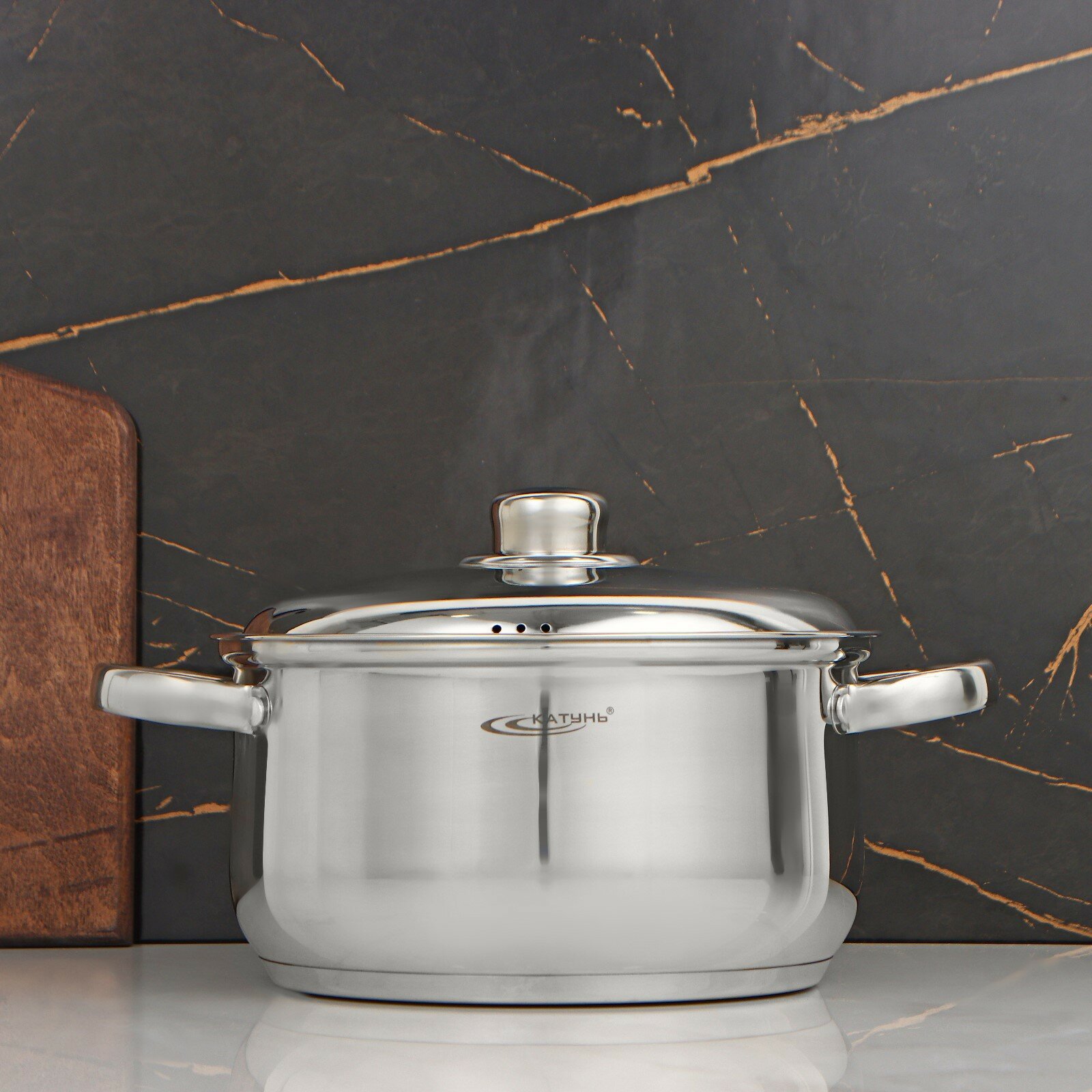 Кастрюля 7,3 л катунь, гретта, КТ04-D-72, нерж. сталь, зеркальная полировка