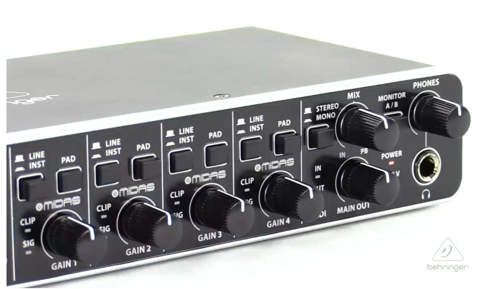 Микрофонные преампы by Midas. Отличная коммутация, возможность вывести раздельные стереопары на колонки и на наушники с раздельной регулировкой громкости. Очень стабильный драйвер. Наличие XLR выходных разъемов (переходники это всегда источник неожиданных проблем). Питание как от юсб так и от адаптера (он в комплекте!). Громкий выход на наушники (в m40x на середине диапазона можно оглохнуть) |