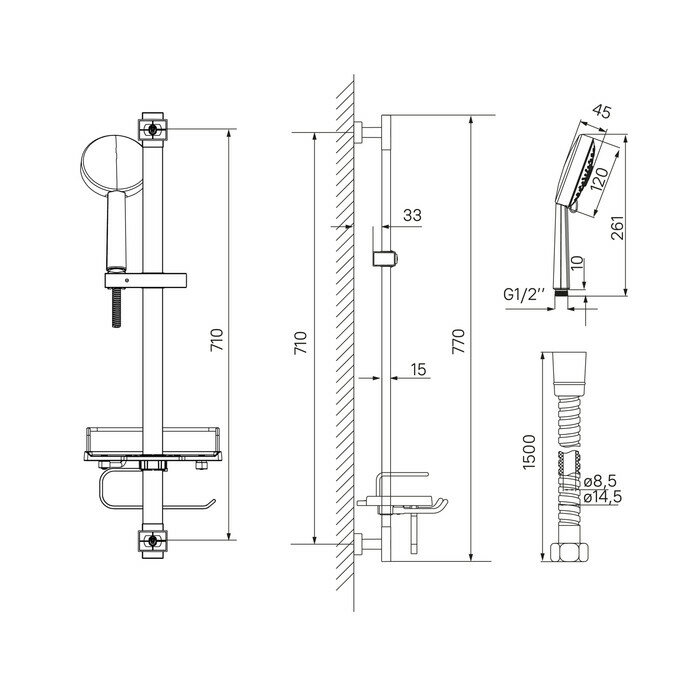 | Дополнительная информация | высота стойки для душа: 770 мм; диаметр душевой лейки: 120 мм |