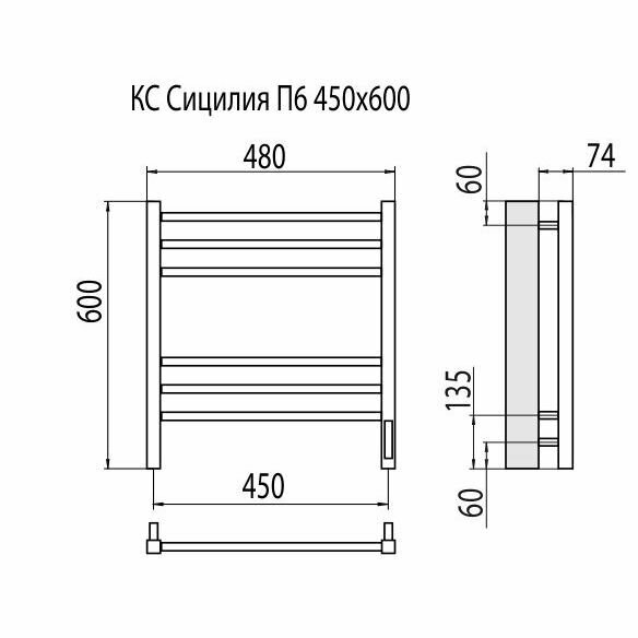 Полотенцесушитель электрический черный КС Сицилия quick touch П6 450х600 Terminus