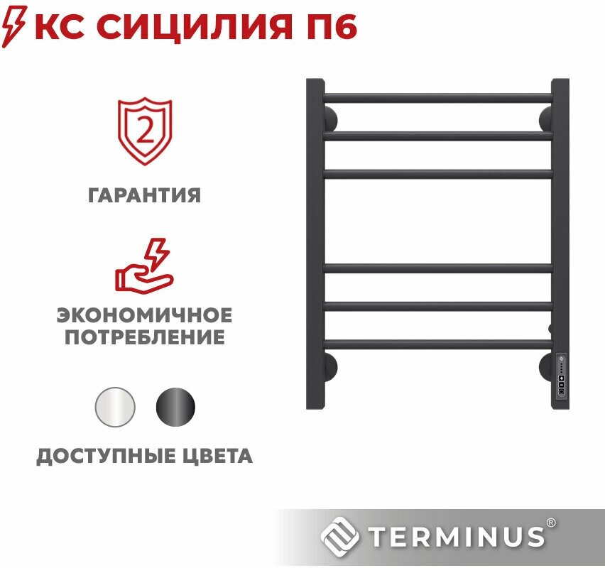 Купить Полотенцесушитель электрический черный TERMINUS (Терминус) Сицилия П6 КС 450х600 мм, диммер Quick Touch, гарантия 2 года