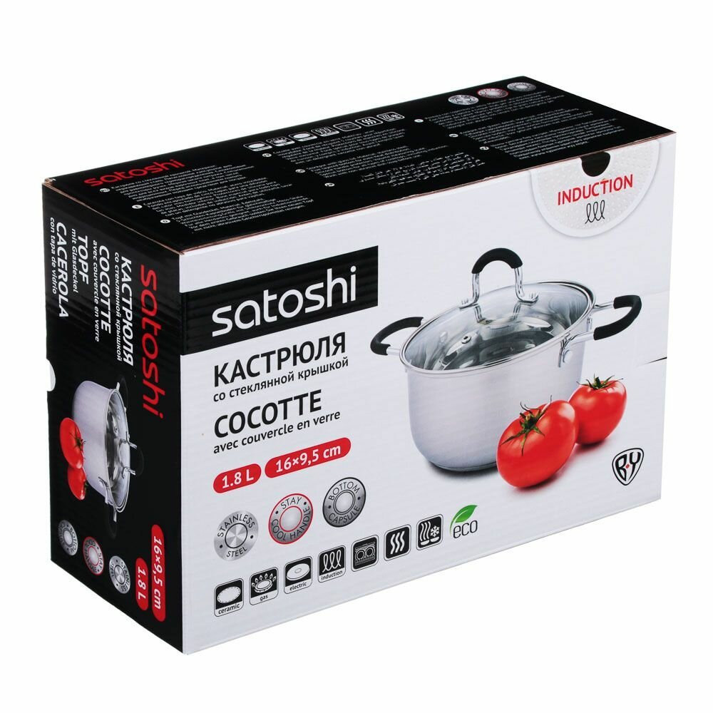 Кастрюля 1,8 л SATOSHI "Альбер" со стеклянной крышкой, нержавеющая сталь, индукция