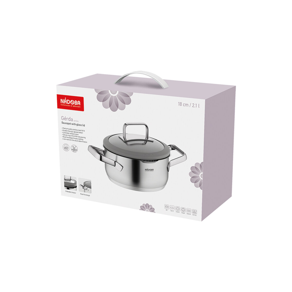 Кастрюля Nadoba GERDA со стеклянной крышкой, 18 см, 2.1 л
