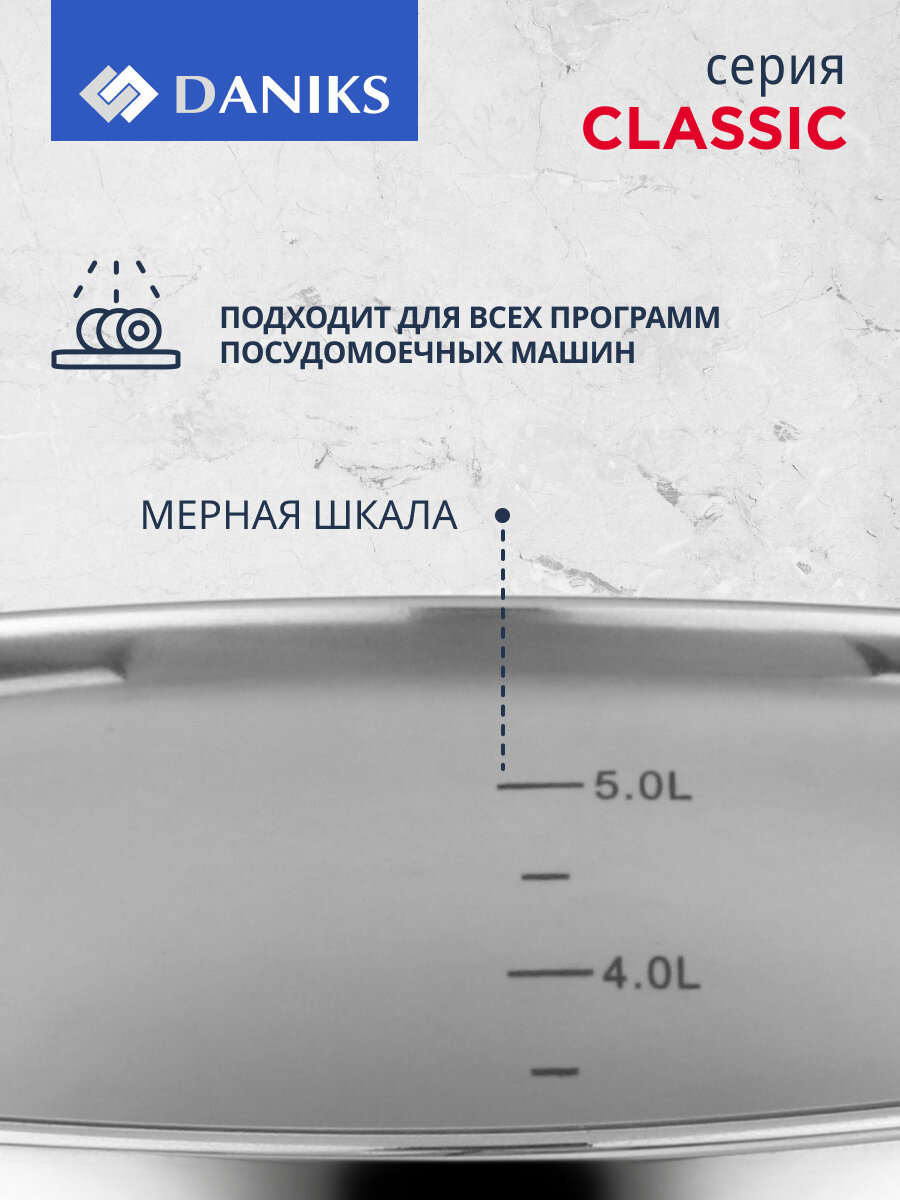 Кастрюля нержавеющая сталь, 6.5 л, с крышкой, Daniks, Классика, SD-24