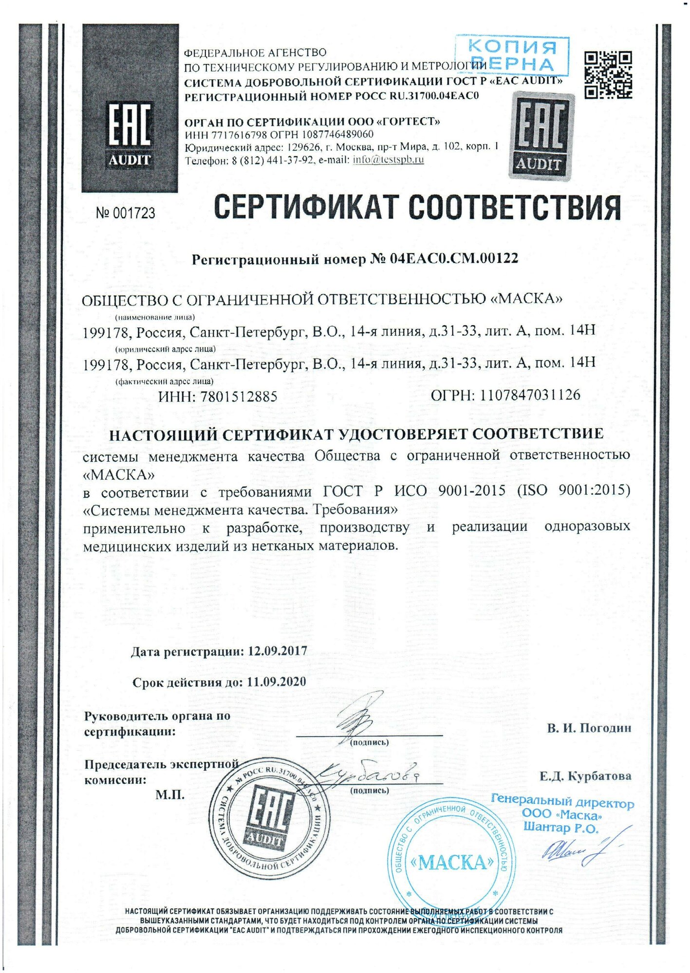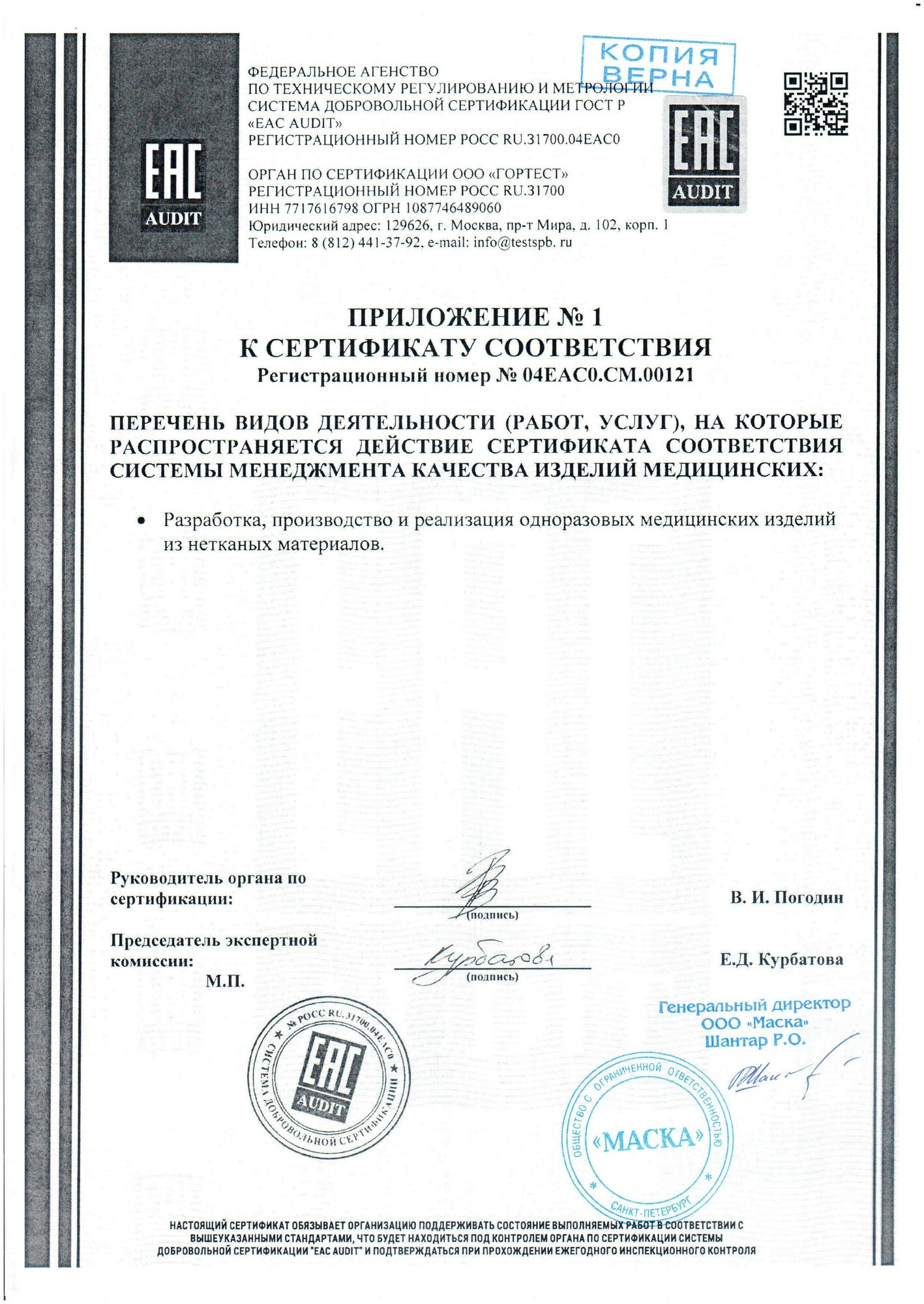 | Тип | маска медицинская |