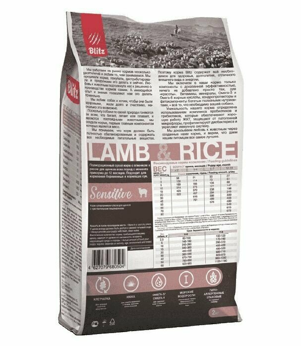 Сухой корм для щенков Blitz 2кг Puppy Sensitive Lamb&Rice Ягненок и рис интересное: