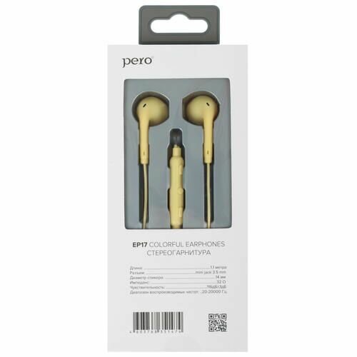 Купить Наушники проводные Pero EP17 желтая .