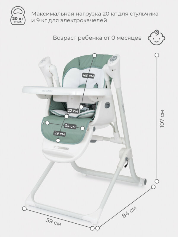 Стульчик для кормления качели Rant MELODY RS201 с 6 месяцев Ocean Green