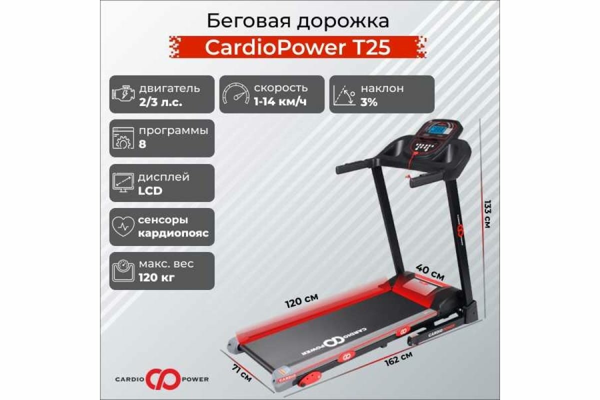 Ниже Вы можете прочитать отзывы на CardioPower Беговая дорожка CardioPower T25, ознакомится с подробными характеристиками, посмотреть интересные обзоры и фотографии на CardioPower Беговая дорожка CardioPower T25.