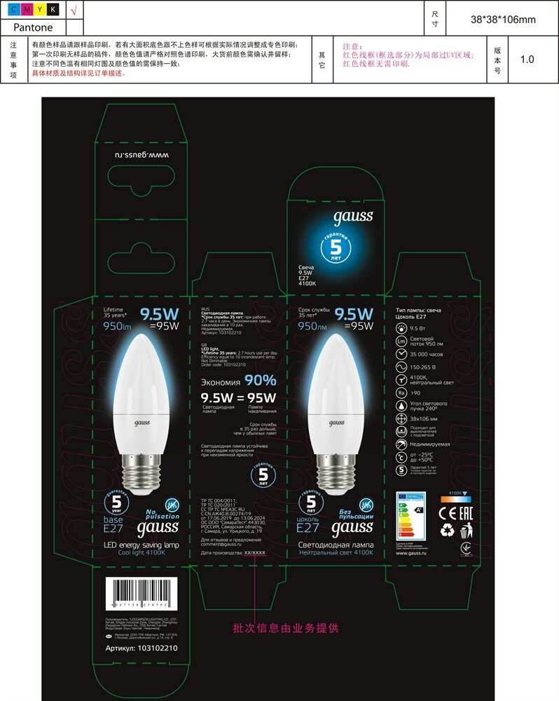СохранитьGauss Свеча C37 E27 9.5W(950lm) 4100K 4K 101x37матовая, алюм./пластик 103102210 (арт. 650781) интересное: