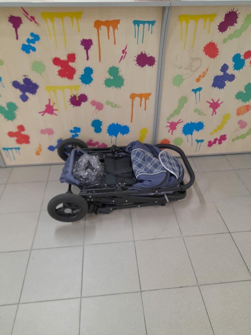 | Минусы: | Мне попалась с браком, колеса едут восьмёркой, не прошит участок чехла на ручке и заломы на ней, липучки некачественно прошиты,