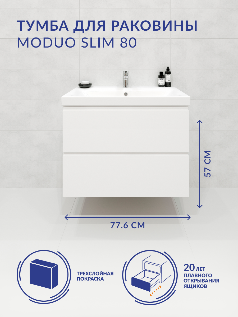 Тумба под раковину Cersanit Moduo Slim 80 SB-SZ-MOD-MO80Sl/Wh подвесная Белая