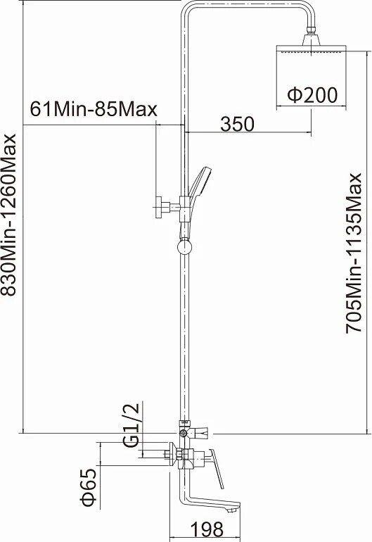 | Комплектация | душевая стойка / Смеситель / излив / установочный комплект / штанга / верхняя лейка / ручная лейка / шланг |