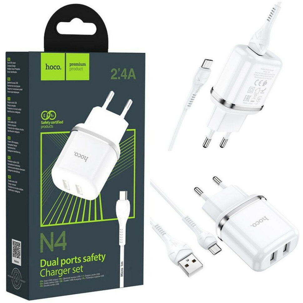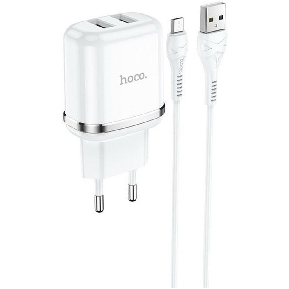 Сетевое зарядное устройство Hoco N4, 2 USB - 2.4 А, кабель microUSB 1 м, белый