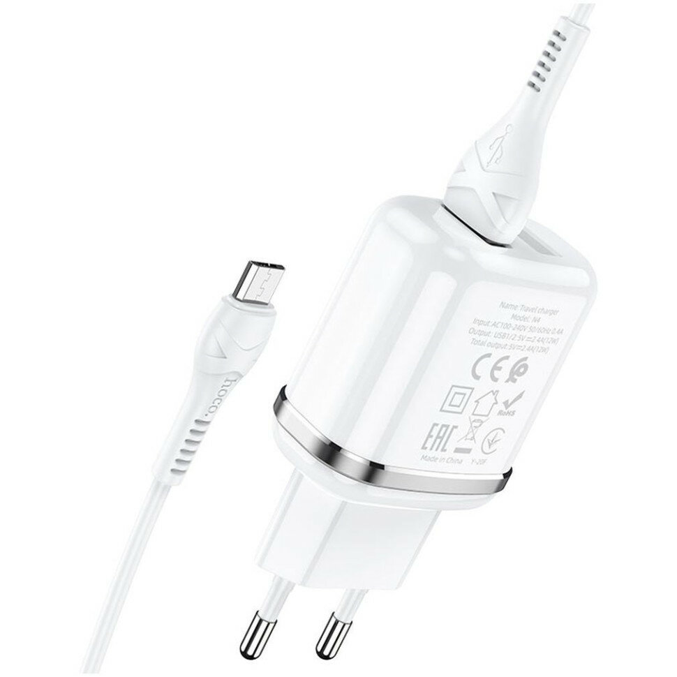 Сетевое зарядное устройство Hoco N4 Aspiring + кабель micro-USB, 12 Вт, белый