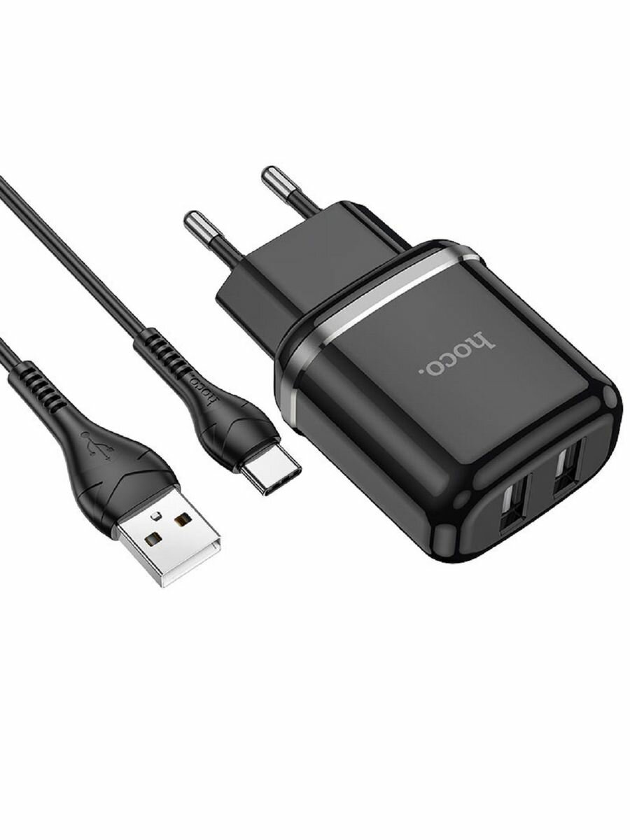 hoco N4 Aspiring зарядное устройство с двумя USB выходами 2.4A, с кабелем Type-c - черный интересное: