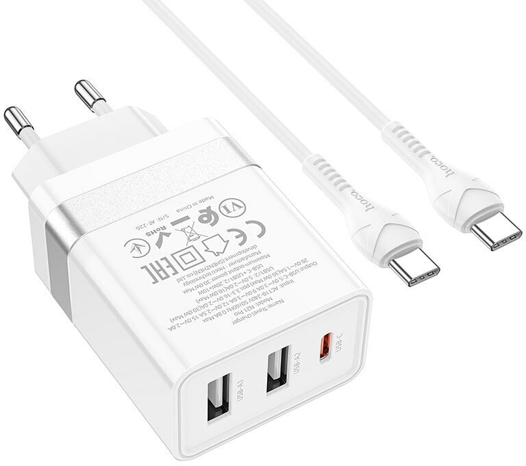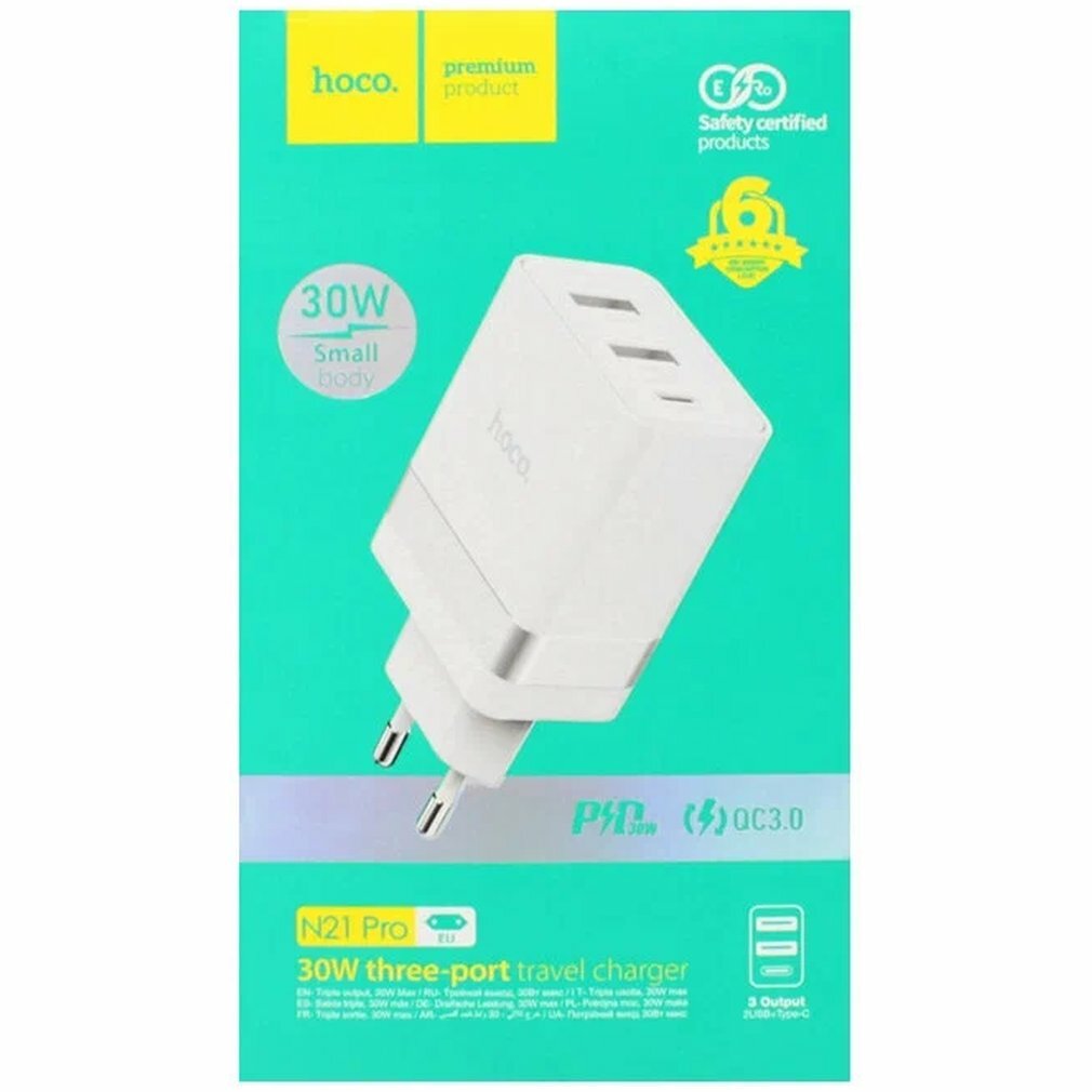 Сетевое зарядное устройство Hoco N21 Pro, 2 USB + Type-C, PD 30W, QC 3.0, белый
