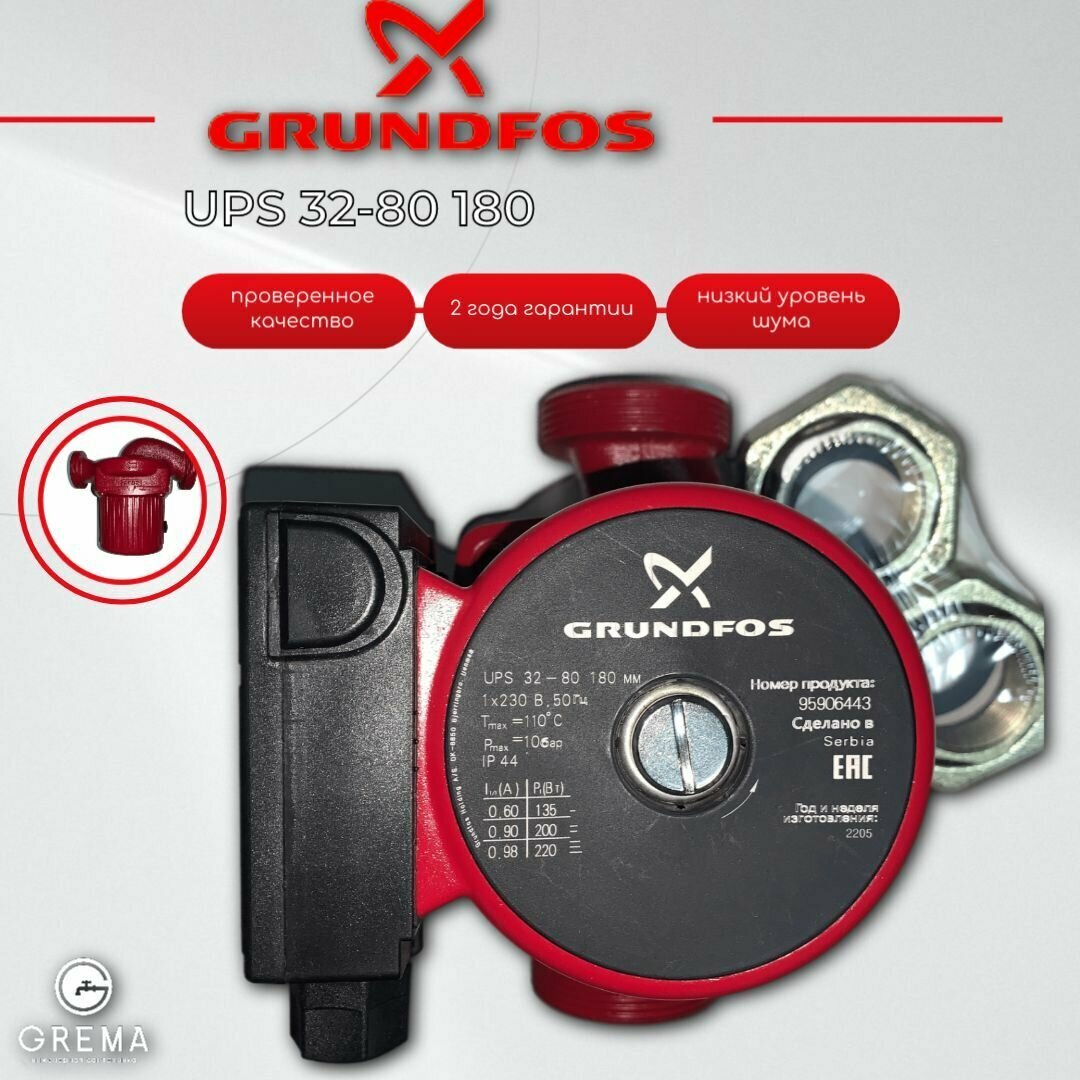 Насос циркуляционный Grundfos UPS 32-80 180 1x230v (без гаек) интересное: